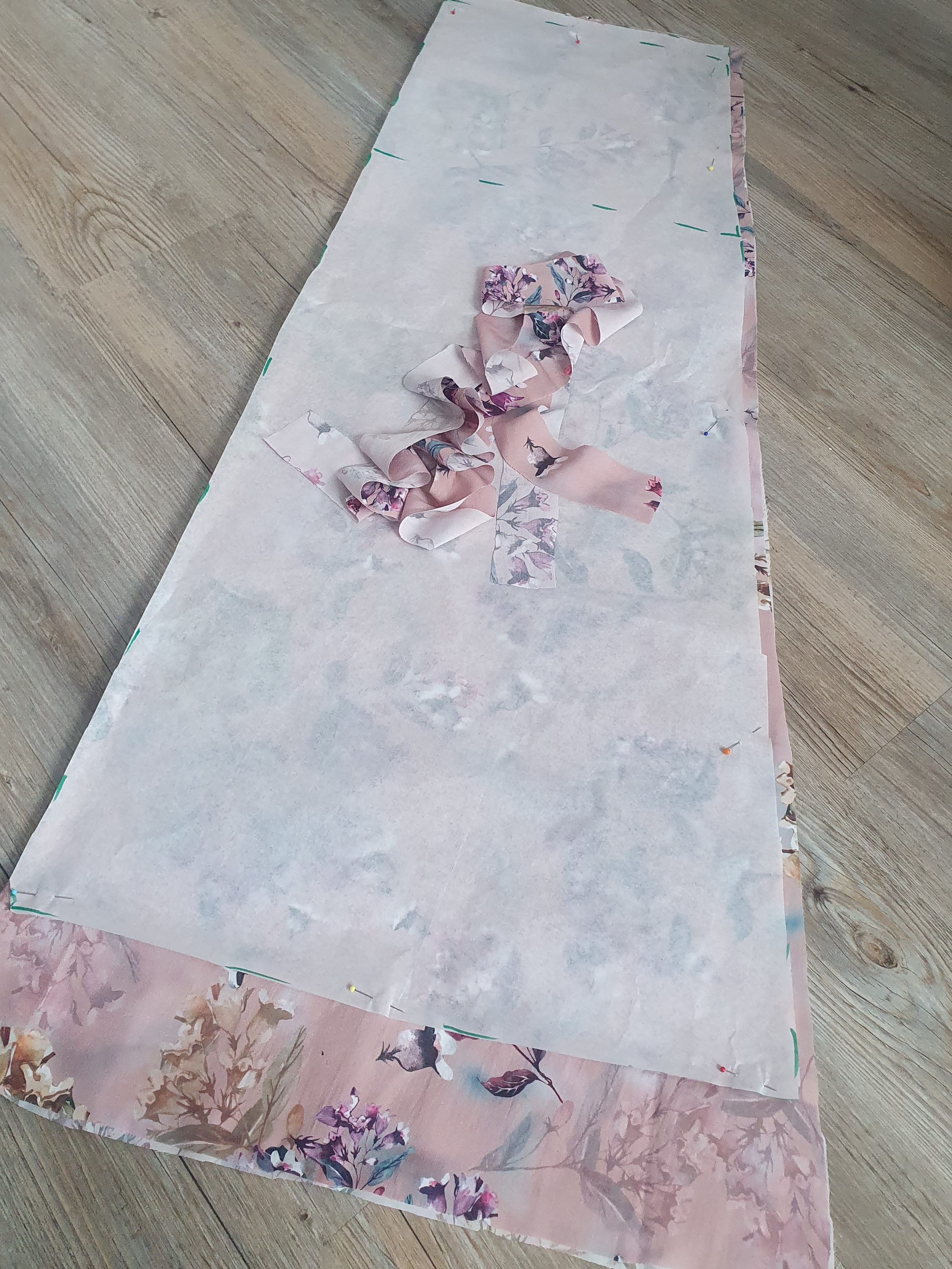 Hier is waar het mee start: een voorpand, achterpand, en rechte stroken die dienen als tailleband en strikband. Ik knipte nog wat extra lengte aan de rok, zodat deze wat langer valt.