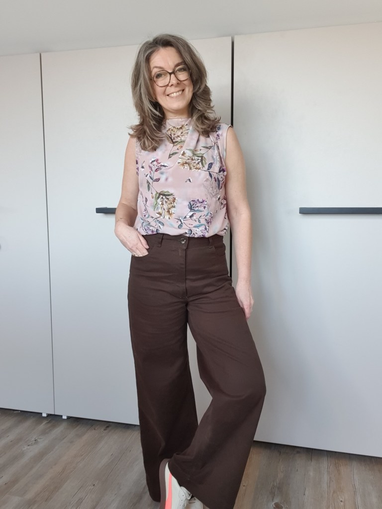 Ik heb getwijfeld over de mouwen. Aangezien het me dan iets te veel ‘gesloten’ leek: én mouw én hoge hals, ging ik voor de zomervariant. Het resultaat is luchtig genoeg en toch gekleed!