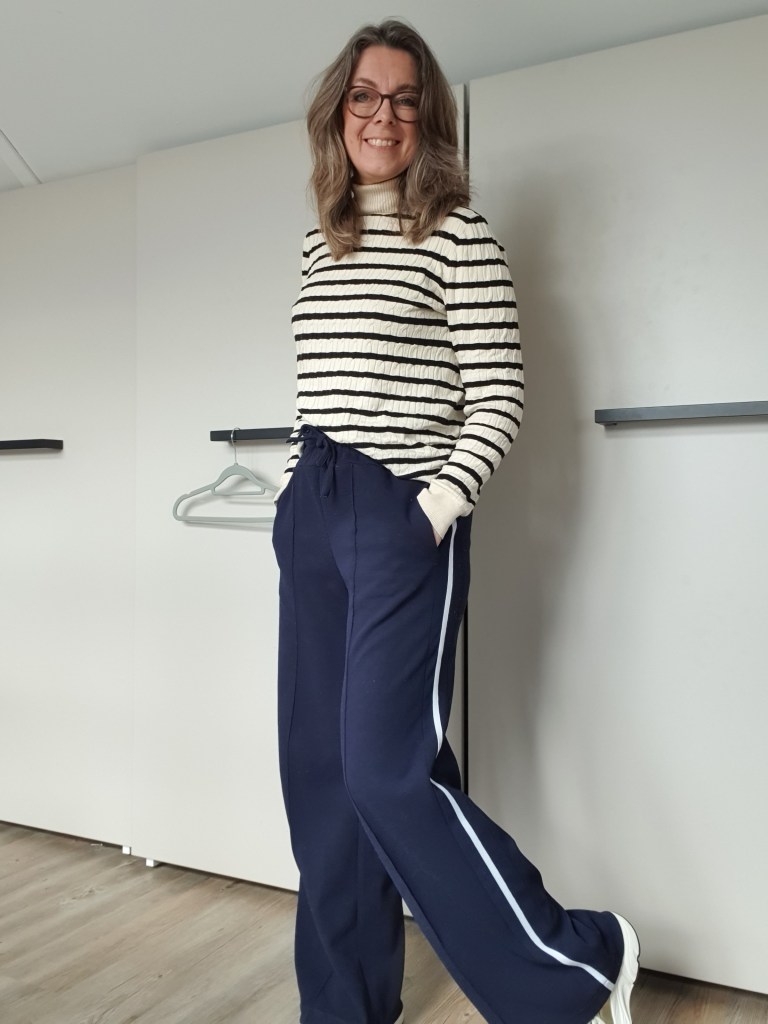 - de blauwe broek is van Knipmode